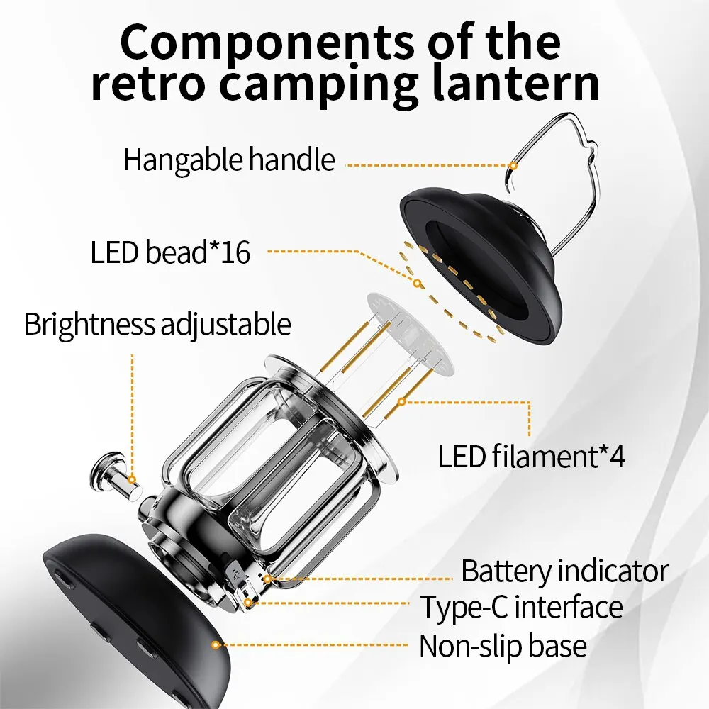 Combining classic vintage charm with modern LED efficiency, this rechargeable camping lantern delivers bright, warm light that enhances comfort and safety wherever your journey takes you.