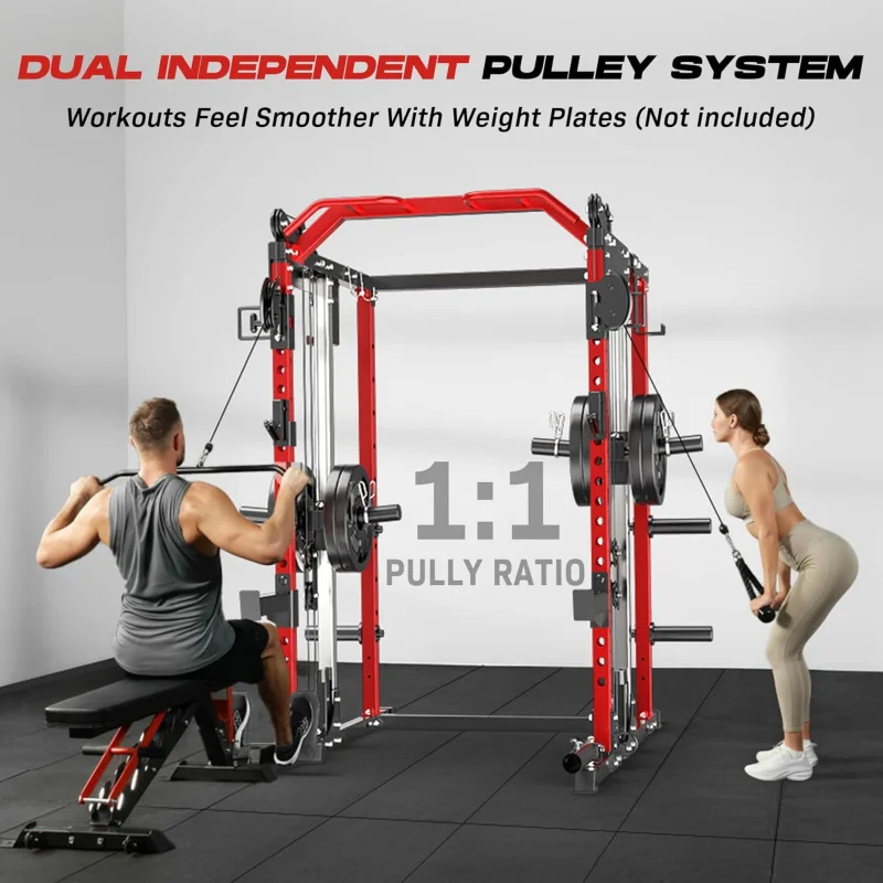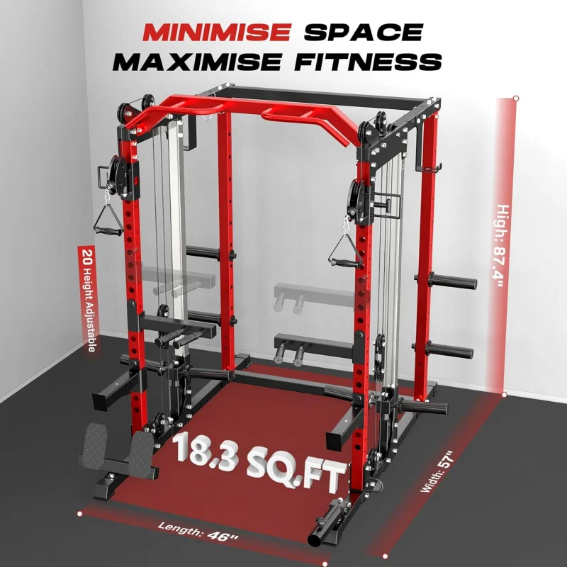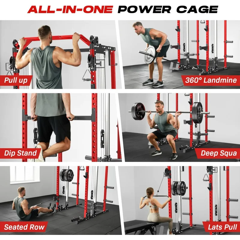 Upgrade your home workouts with this space-saving Power Rack featuring a dual independent pulley system for complete full-body training. Designed for strength, versatility, and efficiency, this multi-function squat rack combines a traditional power cage with smooth cable functionality, making it ideal for serious lifters and home fitness enthusiasts alike.
