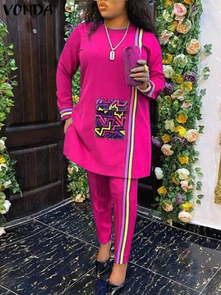 Step into effortless elegance with the Plus Size 5XL VONDA Women Pant Sets 2025, a beautifully designed 2-piece outfit made for women who love comfort, style, and expressive prints. This vintage-inspired suit features a long sleeve top and matching trousers, crafted with a loose, breathable fit that flatters every curve. The vibrant Bohemian print adds a unique artistic touch, making it perfect for both casual outings and refined occasions.